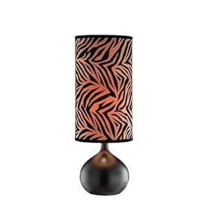 Product Description : 99506 Features: -Lamp.-Material: Metal.-Round tiger print hard back shade.-Switch on / off. Color/Finish: -Finish: Black. Specifications: -60 Watt.