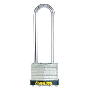 Product Description : From the ManufacturerBlack Dog locks offer superior security to protect your possessions from theft. This Single Bumper Laminated Steel Padlock uses a long shackle and solid brass cylinder with pin tumbler mechanism. Laminated zinc-plated steel casing with chrome finish. Durable hardened steel shackle is made of solid rivet construction. Keyed different. Product Description : Black Dog locks offer superior security to protect your possessions from theft. This Single Bumper Laminated Steel Padlock uses a long shackle and solid brass cylinder with pin tumbler mechanism. Laminated zinc-plated steel casing with chrome finish. Durable hardened steel shackle is made of solid rivet construction. Keyed different.Padlock 1-11/16LaminatedLaminated padlockKeyed different; long shackleDouble locking for resistance against prying