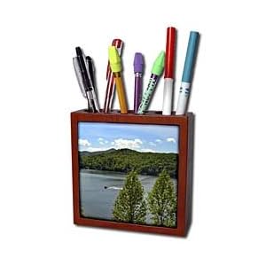 Product Description : A lake in North Georgia Tile Pen Holder is measuring 5w x 5h x 2d. Made from high quality solid mahogany wood with satin finish and one 4.25 commercial grade mirror gloss ceramic tile. Looks great on a desk or counter top with a full color custom imaged tile.