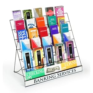 Product Description : This wire magazine rack has 6 tiers to best organize all of the various pieces of literature. The pockets on this counter brochure holder are 25"w x 2-1/2"d x 5-1/2"h to display copious amounts of promotions. This wire magazine rack comes with a sign holder for supplemental advertising. The metal literature stand is powder coated black and constructed from metal for a durable unit. This wire magazine rack 29"w x 20"d x 24-1/4"h for counter and table use.