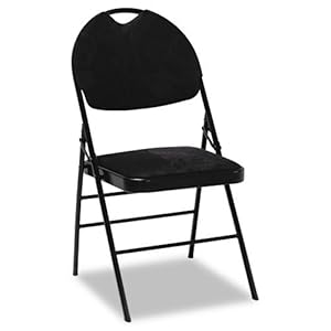 Product Description : Color: BlackFoam padding and roomier seat for more cushioned comfort. Provides a 13% larger seating area than a standard folding chair. Commercial grade microfiber upholstery. Double hinges, triple leg braces, and tube-in-tube design combine for strength and durability. Non-marring rubber leg caps.