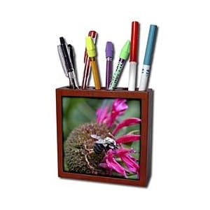Product Description : A bee collecting pollen from a flower Tile Pen Holder is great on a desk or counter top. Made of high quality solid wood with a satin finish. Image displayed on one inset high gloss 4.25" x 4.25" ceramic tile. Overall size is 5" x 5" x 1 2/3" with 31 1/3" top holes.