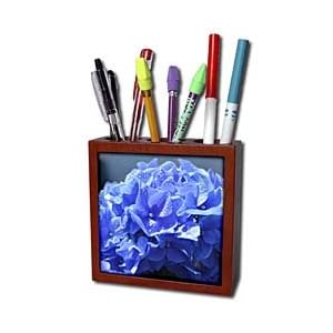 Product Description : Blue Hydrangea Flowers Tile Pen Holder is measuring 5w x 5h x 2d. Made from high quality solid mahogany wood with satin finish and one 4.25 commercial grade mirror gloss ceramic tile. Looks great on a desk or counter top with a full color custom imaged tile.