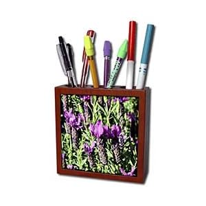 Product Description : Unique looking Lavender Tile Pen Holder is great on a desk or counter top. Made of high quality solid wood with a satin finish. Image displayed on one inset high gloss 4.25" x 4.25" ceramic tile. Overall size is 5" x 5" x 1 2/3" with 3- 1 1/3" top holes.