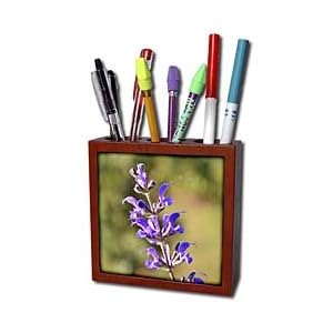 Product Description : Salvia017 Small Blue Flowers Tile Pen Holder is great on a desk or counter top. Made of high quality solid wood with a satin finish. Image displayed on one inset high gloss 4.25" x 4.25" ceramic tile. Overall size is 5" x 5" x 1 2/3" with 3- 1 1/3" top holes.