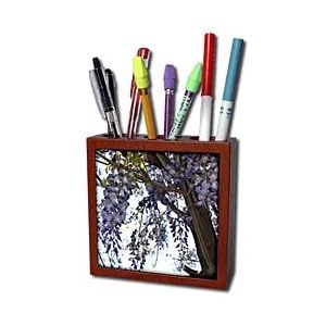 Product Description : Beautiful purple wisteria tree Tile Pen Holder is measuring 5w x 5h x 2d. Made from high quality solid mahogany wood with satin finish and one 4.25 commercial grade mirror gloss ceramic tile. Looks great on a desk or counter top with a full color custom imaged tile.