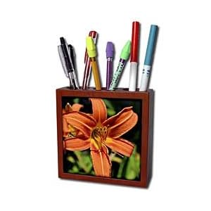 Product Description : Garden Tiger Lily Tile Pen Holder is measuring 5w x 5h x 2d. Made from high quality solid mahogany wood with satin finish and one 4.25 commercial grade mirror gloss ceramic tile. Looks great on a desk or counter top with a full color custom imaged tile.