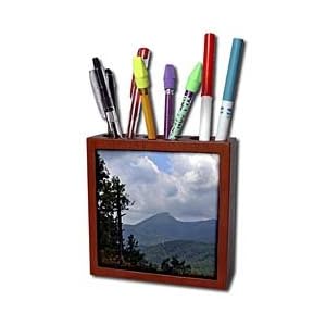 Product Description : Mountains in North Carolina Tile Pen Holder is measuring 5w x 5h x 2d. Made from high quality solid mahogany wood with satin finish and one 4.25 commercial grade mirror gloss ceramic tile. Looks great on a desk or counter top with a full color custom imaged tile.