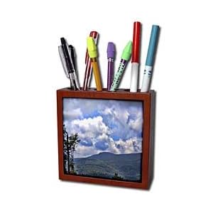 Product Description : Grandfather Mountain 234 Mountain Scene Tile Pen Holder is great on a desk or counter top. Made of high quality solid wood with a satin finish. Image displayed on one inset high gloss 4.25" x 4.25" ceramic tile. Overall size is 5" x 5" x 1 2/3" with 3- 1 1/3" top holes.